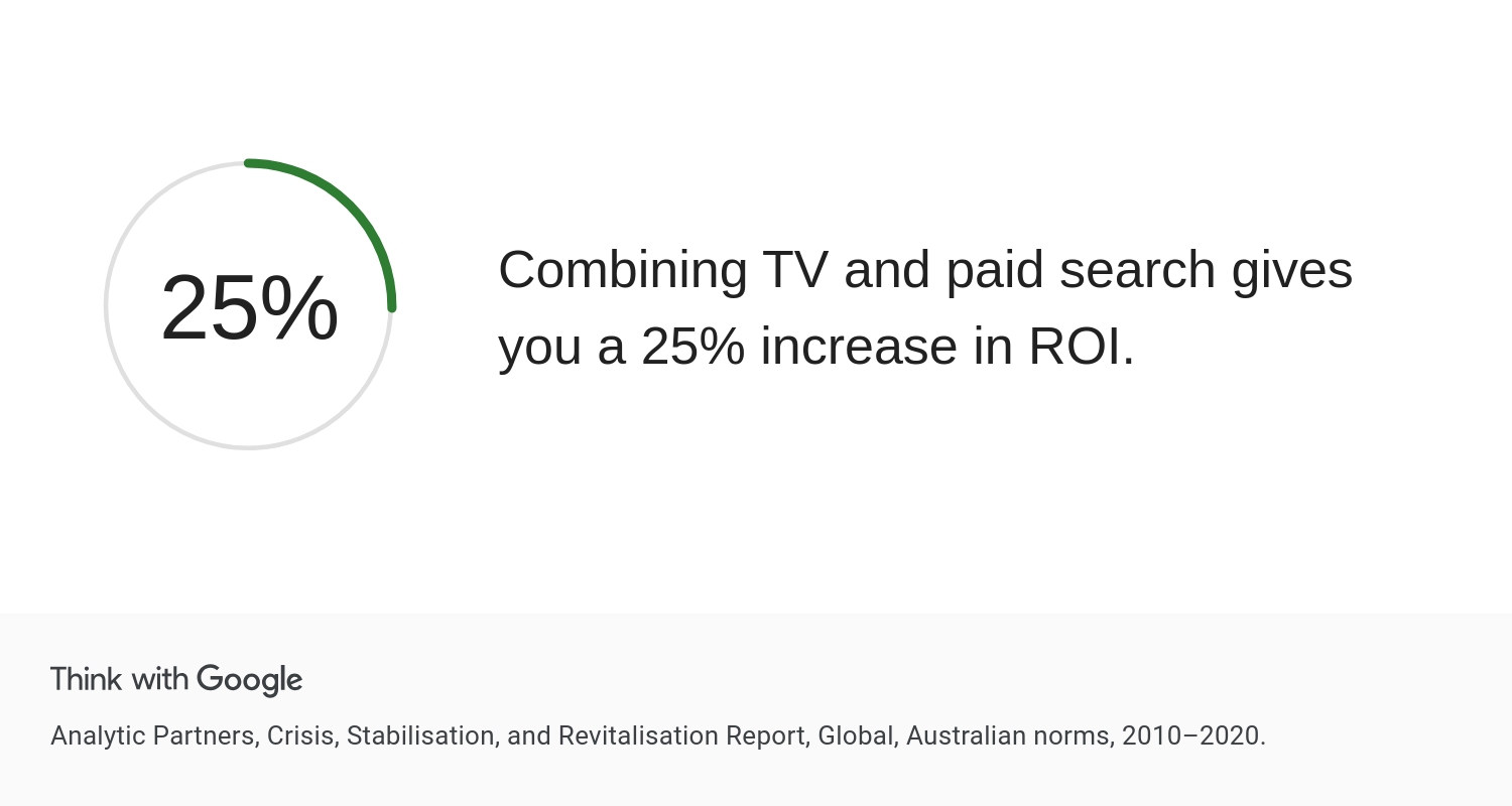 Combining TV and paid search gives you a 25% increase in ROI.